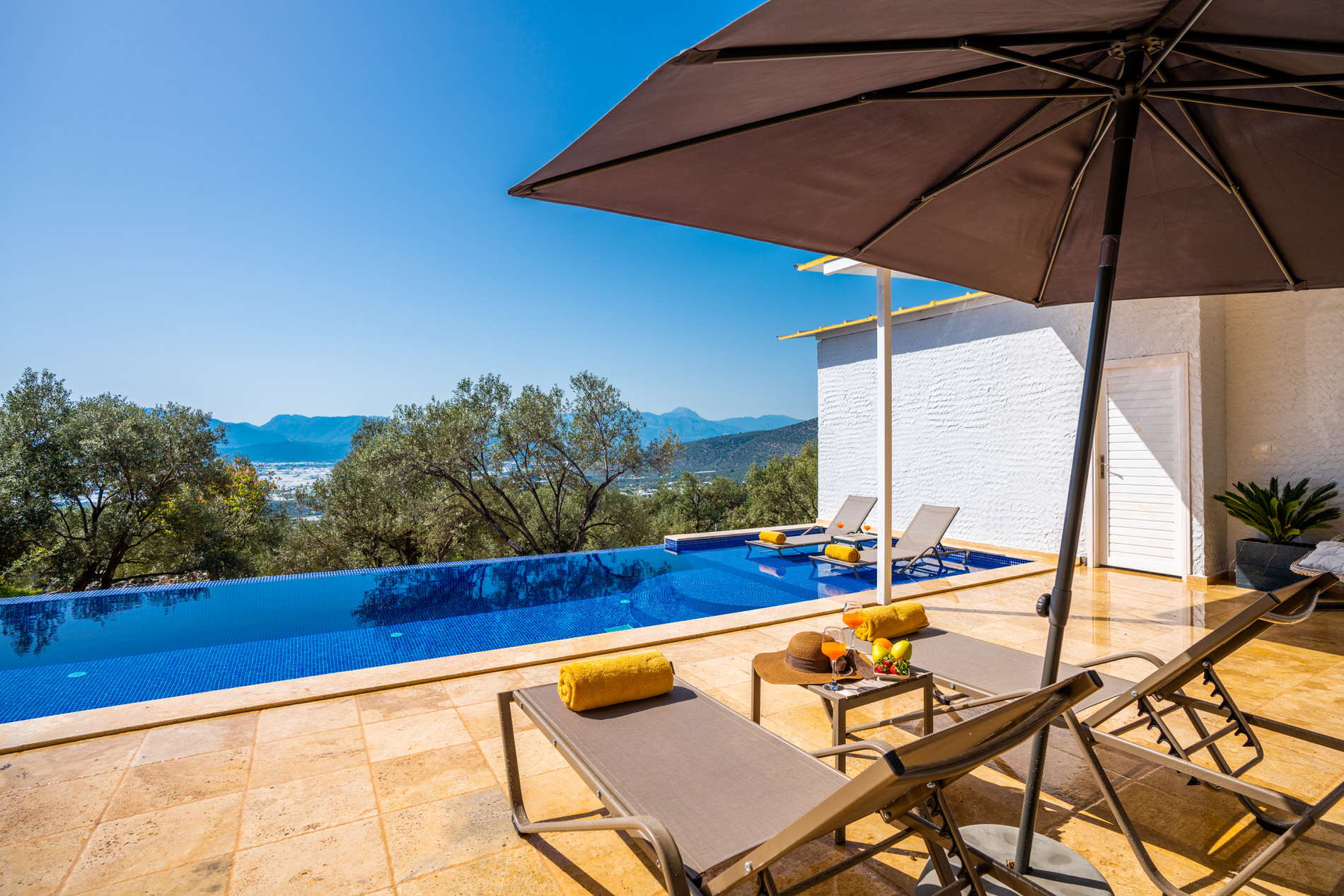 Villa Vals 1, Kalkan Üzümlü köyünde konumlanmakta olan yeşilliklerle kaplı doğa manzarasına hakim kiralık villalarımız arasında yer almaktadır. Lüks ve modern bir şekilde dekore edilen yazlık villamızda 2 adet yatak odası bulunmakta olup 4 kişiye konaklama imkanı sağlamaktadır. Yatak odalarından bir tanesinin içerisinde tüm yılın vermiş olduğu yorgunluğu giderebileceğiniz jakuzi yer almaktadır, diğer yatak odasının içerisinde ise küvet mevcuttur. Her bir detayın en ince ayrıntısına kadar düşünüldüğü kiralık villamızın havuz ve havuz terası korunaklı hale getirilmiştir. Muhafazakar aileler, balayı çiftleri ve çekirdek aileler rahatlıkla tercih edebilirler. Aynı zamanda villamızın dış özel yüzme havuzuna entegre sığ havuz bulunmaktadır. Sessizlik ve sakinlik içerisinde huzur dolu bir yazlık villada tatil için Villa Vals 1' i tercih edeblilirsiniz.